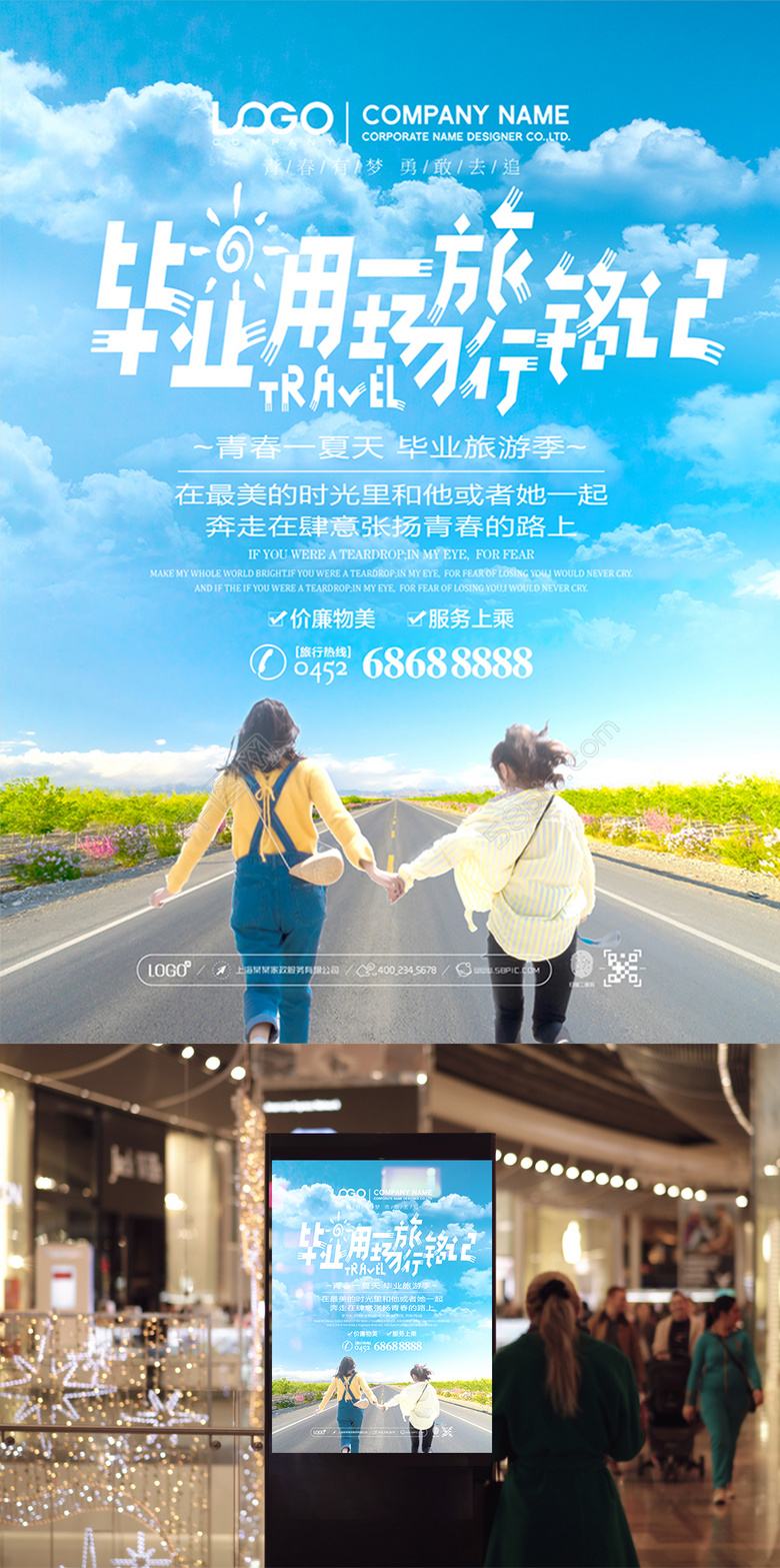 小清新畢業(yè)用一場旅行銘記畢業(yè)旅行海報